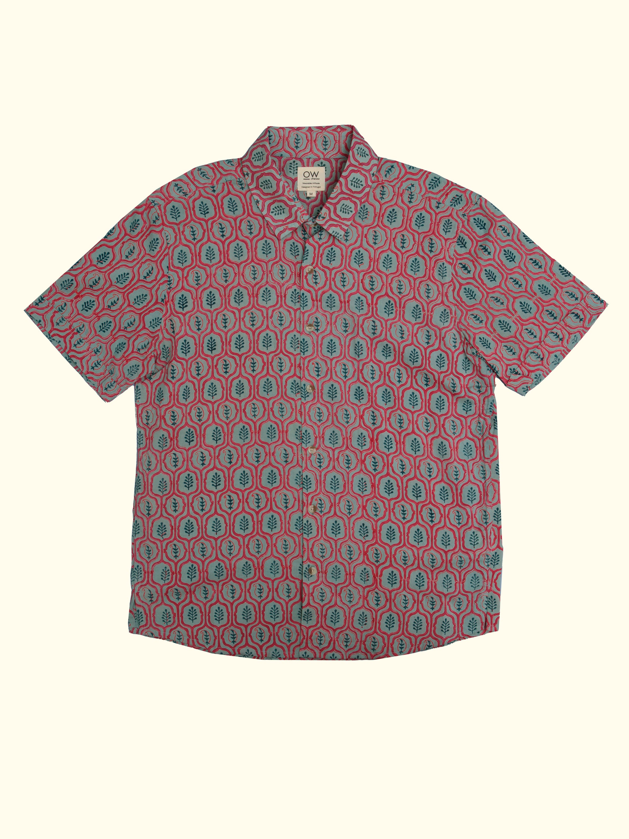 crafted from lightweight 100% cotton, the HANA short-sleeve shirt is printed by hand using the traditional block print technique.
